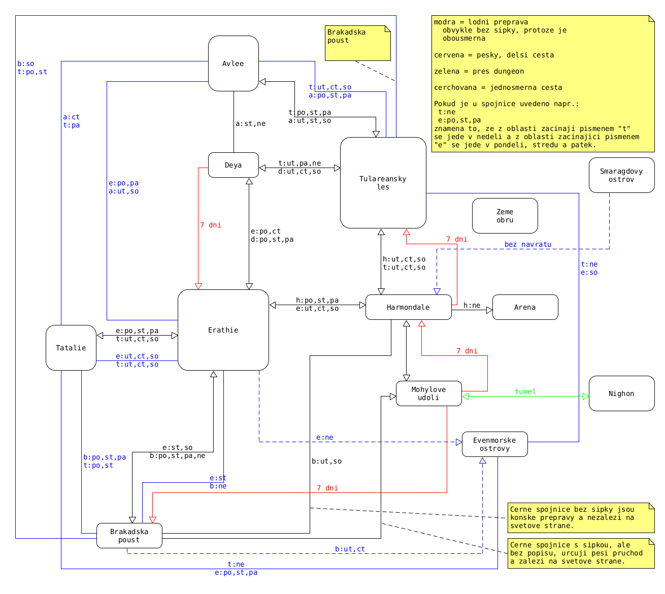 speciálních "magicky silných" míst a kouzla "městská brána" se lze teleportovat do jiných dílů.